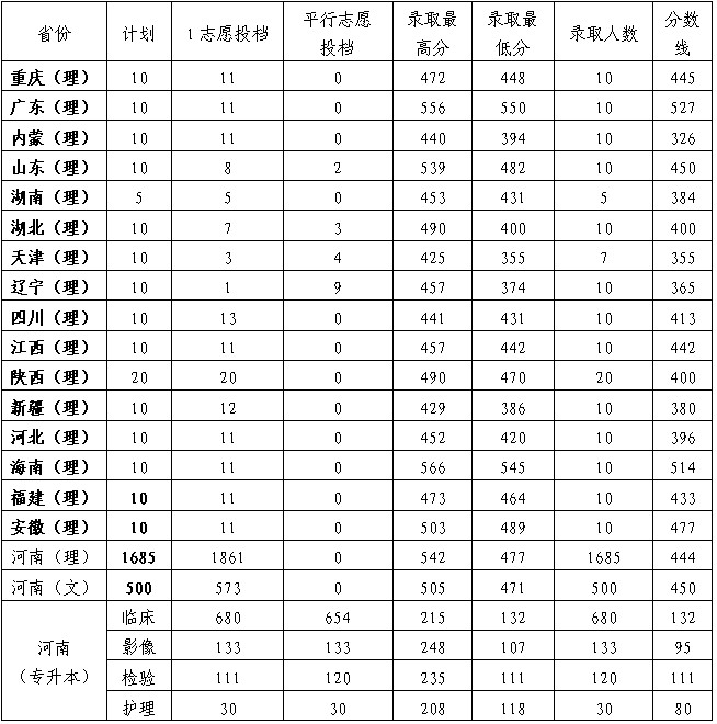2010年新乡医学院三全学院本科录取分数线汇总...