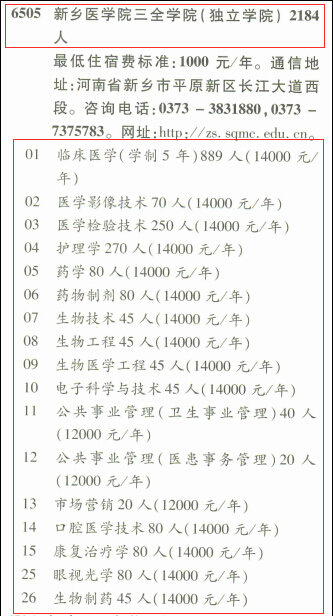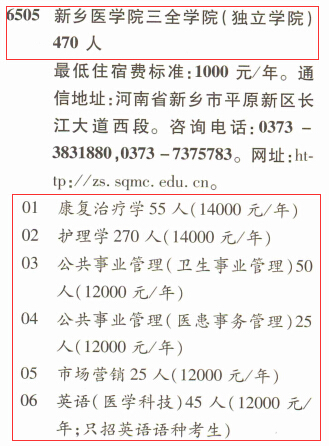 | 2015年《河南省招生考试之友》新乡医学院三全学院招生目录检索 | |||||