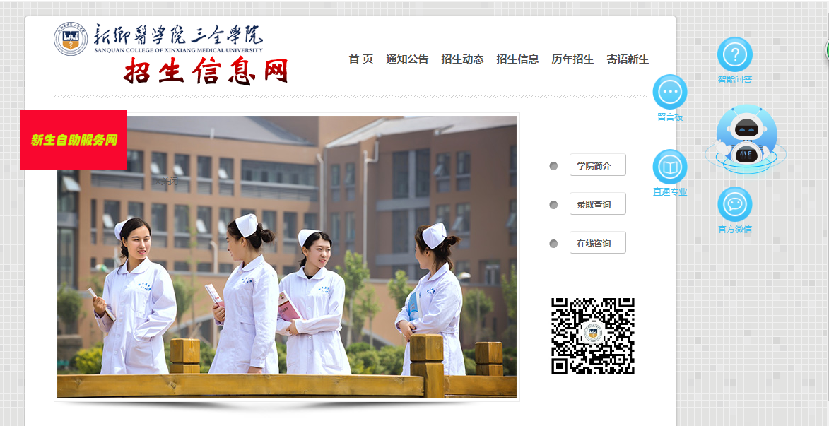 可通过扫码下方二维码,进入新乡医学院三全学院招生咨询智能问答系统,完善基础信息后即可在线咨询或留言。