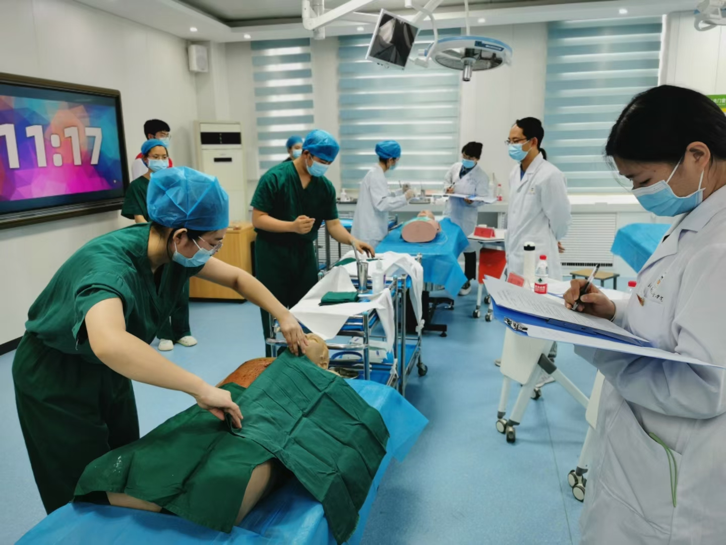 以培养“医德医风正、专业知识实、临床技能强”的高素质医疗人才为目标,全面推进智慧教学,开启智慧课堂,始终将思想引领、价值塑造、知识传授、实践训练“四位一体”的教育模式贯穿整个教学过程中。开展“分段式”理论+实践的训练与考核,实施教、学、练、考、评的五位一体实践技能智能管理,完善了“模拟人、标准化病人、虚拟仿真病人、临床场景”循序渐进的临床技能训练体系,全面提升学生的岗位胜任能力。